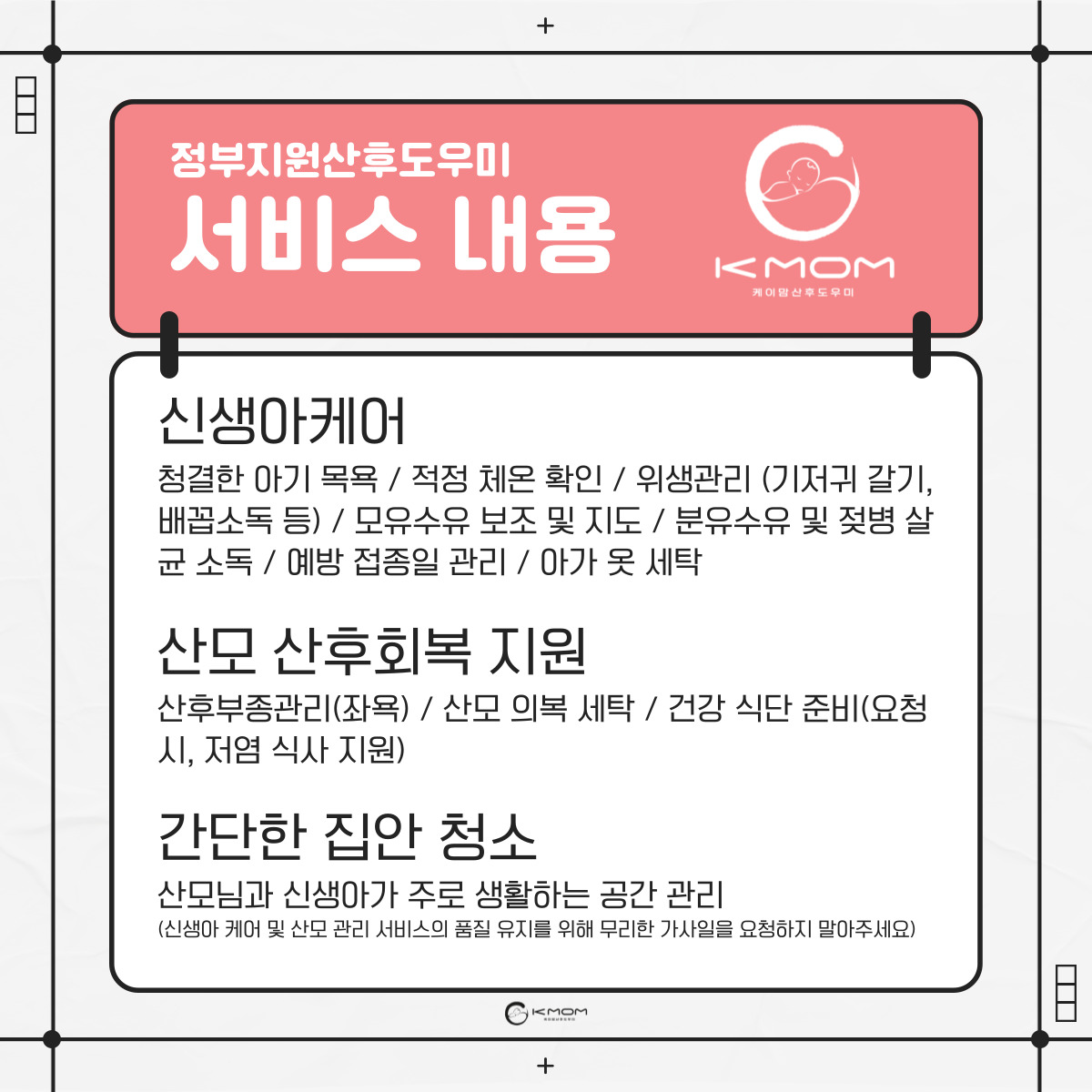 케이맘산후도우미 송파점의 서비스 내용을 살펴보면